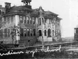 Meridian Rural High School was built in 1912. From 1912-1913, it was the first building west of Denver to have poured cement to the level of the first floor. Built for $32,000, District #33 bonded itself for the building when all, but two of the country grade school districts failed to support the new high school district. A rough count estimates that over 3,000 high school students graduated from this school. It later served as a 9th grade for the entire school district and then as an intermediate school, before it was condemned. The property was purchased and remodeled by local owners and used as by the motor vehicle licensing department. In later years it was purchased by the Cole Community Church and now serves as their high school.